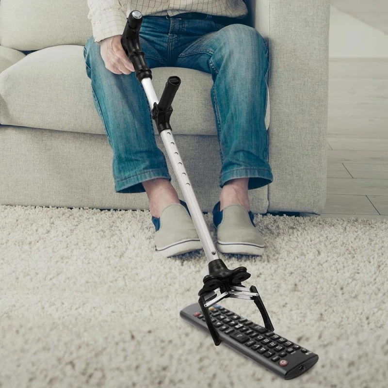 - Polyvalente, la canne télescopique possède une extrémité tripode, garantissant une meilleure stabilité. Ce pied comporte également de pince de ramassage, évitant ainsi de se baisser.