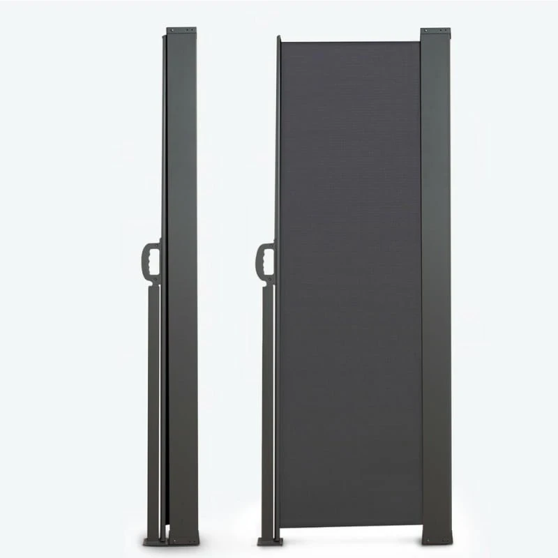 - Optez pour un aménagement extérieur pratique avec cette cloison latérale rétractable au design moderne. Elle s’intégrera sur n’importe quelle terrasse.