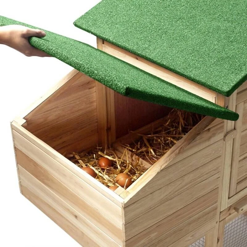 - toit relevable au niveau du pondoir pour accéder facilement aux oeufs.
