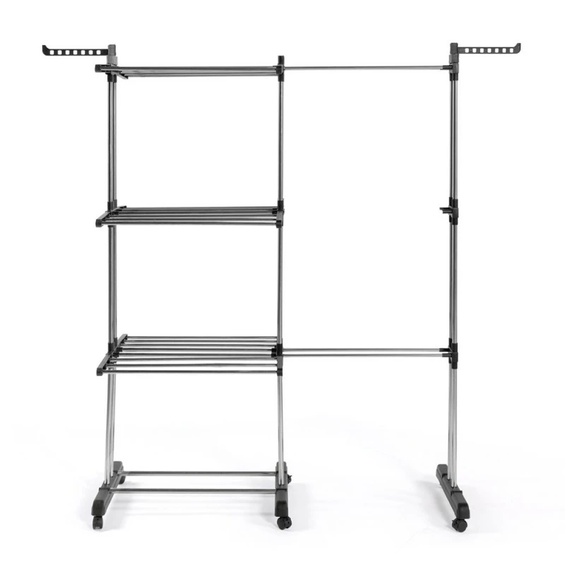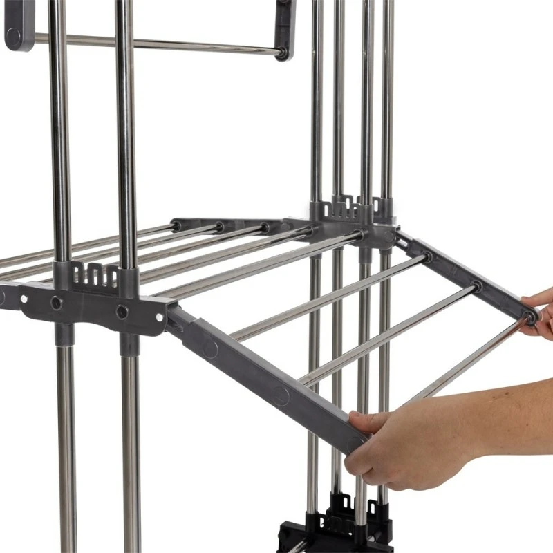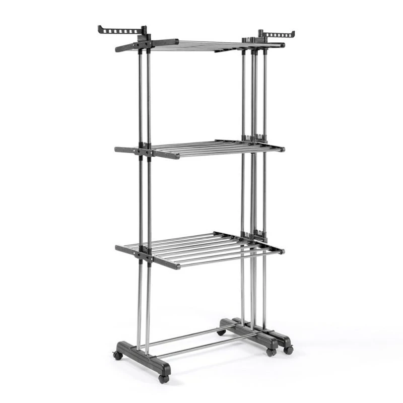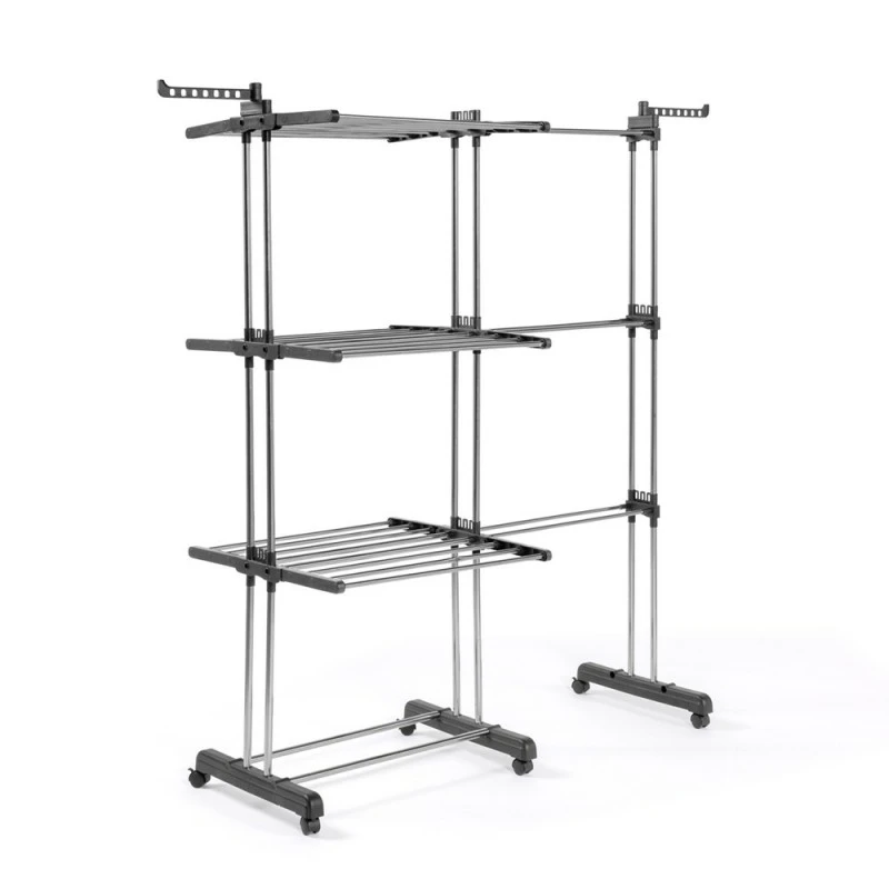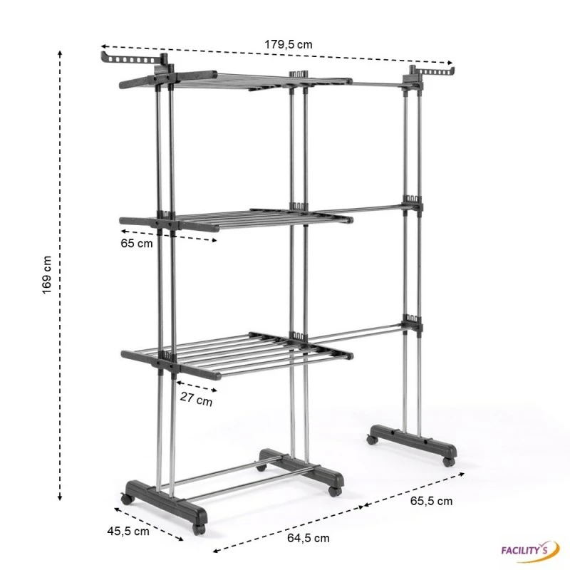 - Malin et pratique, le séchoir à linge réglable se plie facilement et assure un faible encombrement entre deux utilisations. En outre, il se déplace aisément grâce à ses 6 roulettes orientables.