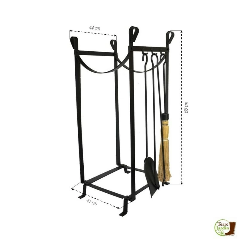 - Hyper pratique, vous pouvez disposer les plus grosses bûches sur le bas du serviteur et le petit bois sur le haut, tandis que les 3 crochets de suspension sur le côté accueillent vos ustensiles indispensables (pince à bois, pelle et balayette).