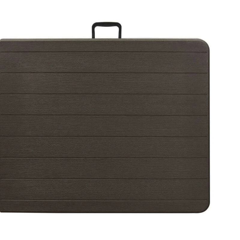 - Pliante, cette table imitation bois est facilement transportable à l’aide de sa solide poignée.