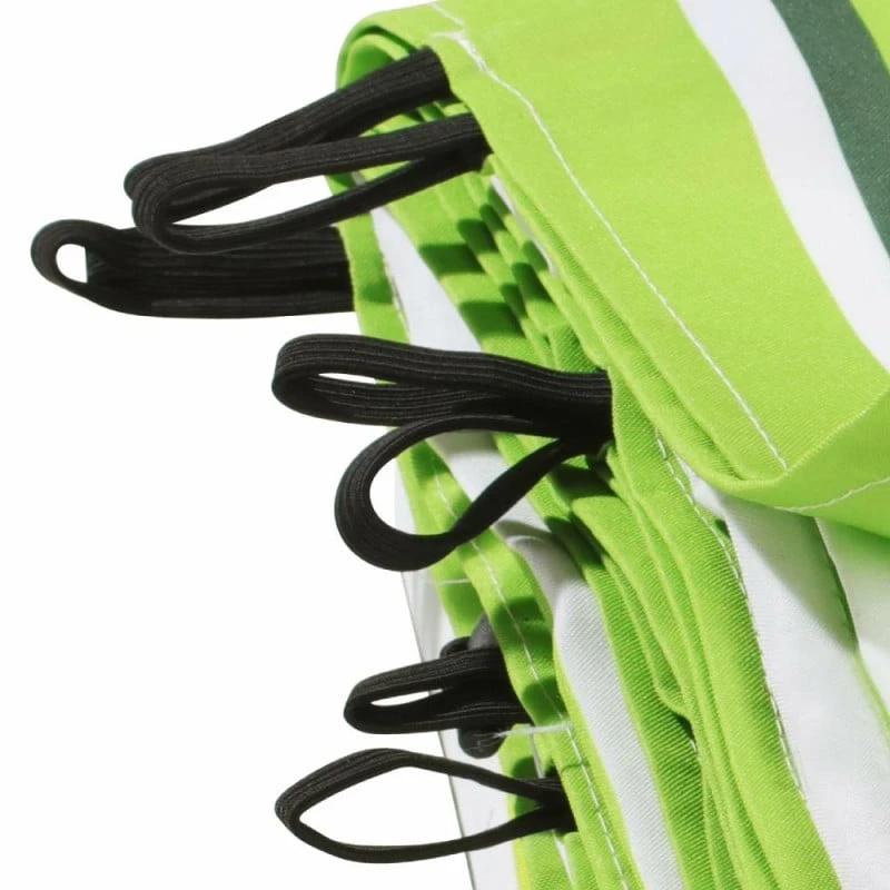 - Il y a 10 crochets de chaque côté sur la largeur et 10 élastiques avec serrage (type “brandebourg”) de chaque côté sur la longueur.